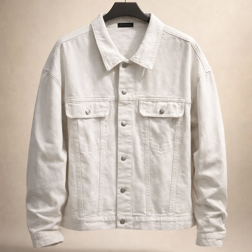 کت جین سفید باکسی لش پارچه کجراه درجه یک