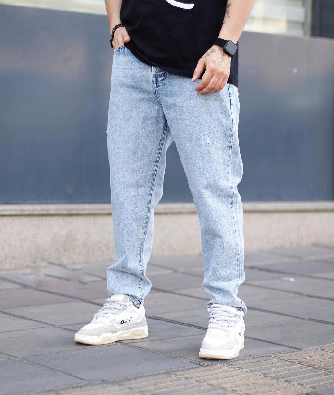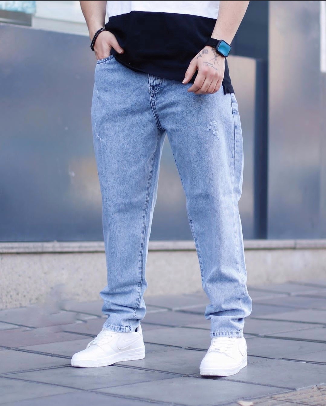 شلوار مام فیت مردانه آبی یخی جذاب و با کیفیت کد226