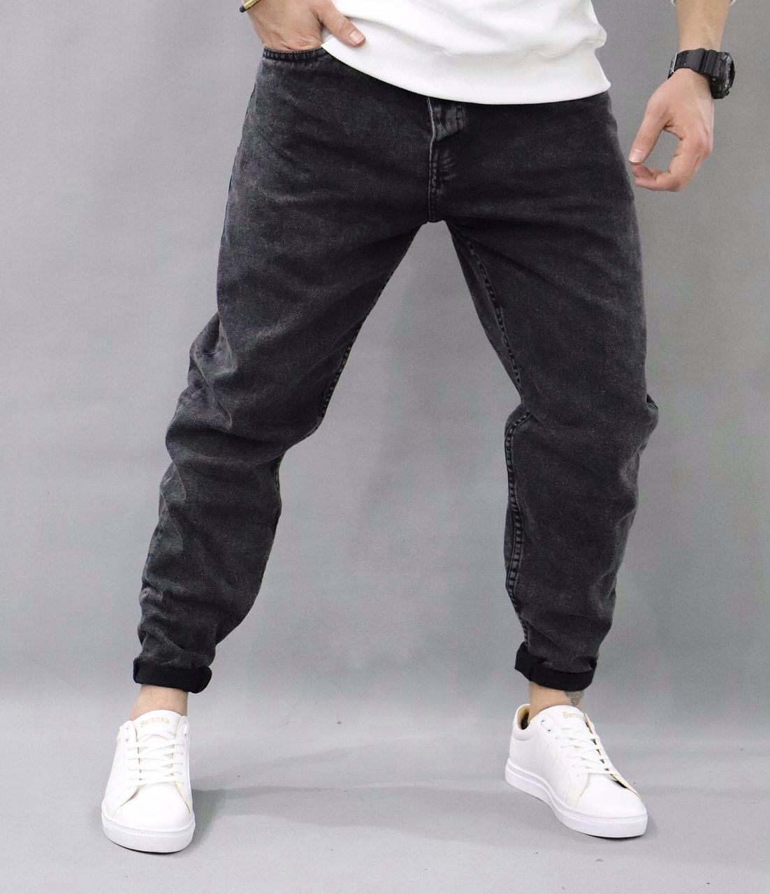 شلوار جین مام فیت مردانه زغالی جین کجراه کد3258