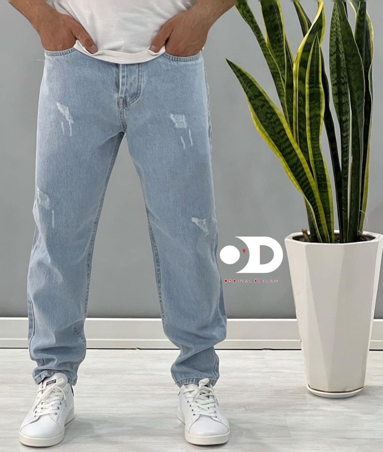 شلوار مام فیت آبی یخی خاص سنگشور مردانه کیفیت عالی از برند اورجینال دیلم کد ۴۵۹
