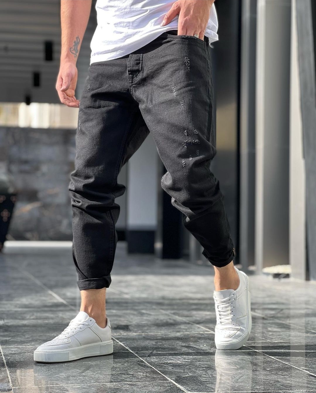 شلوار جین مام فیت مشکی مردانه کد ۸۶۷