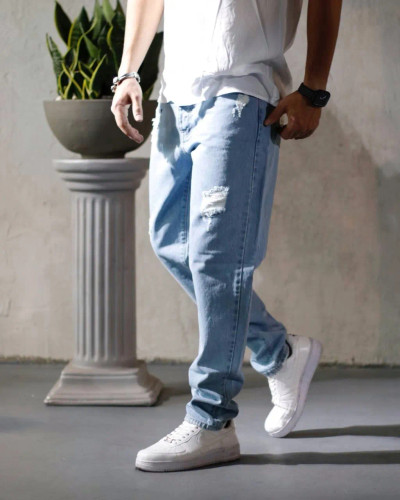 شلوار مام فیت مردانه آبی یخی جذاب و با کیفیت کد226