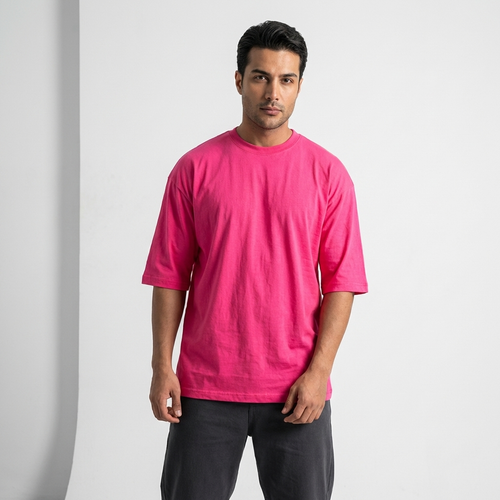 تیشرت لش باکسی سرخابی مردانه پارچه ماکان گرماژ بالا
