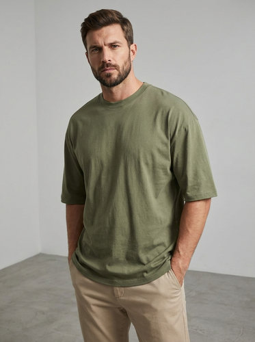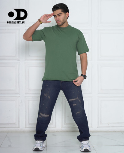 تیشرت ریلکس فیت سبز جلبکی بیسیک پارچه غواصی کش درجه یک | کد G2