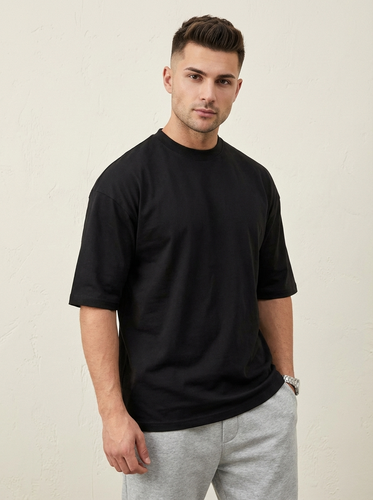 تیشرت باکسی بیسیک مشکی مردانه | پارچه ماکان