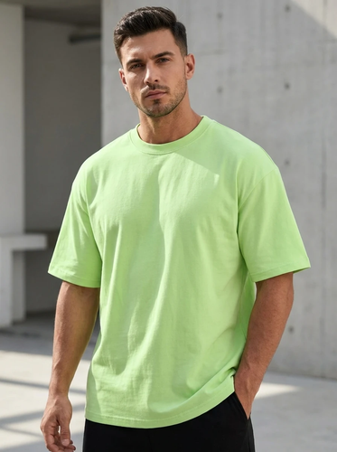 تیشرت لش باکسی سبز فسفری مردانه پارچه ماکان گرماژ بالا