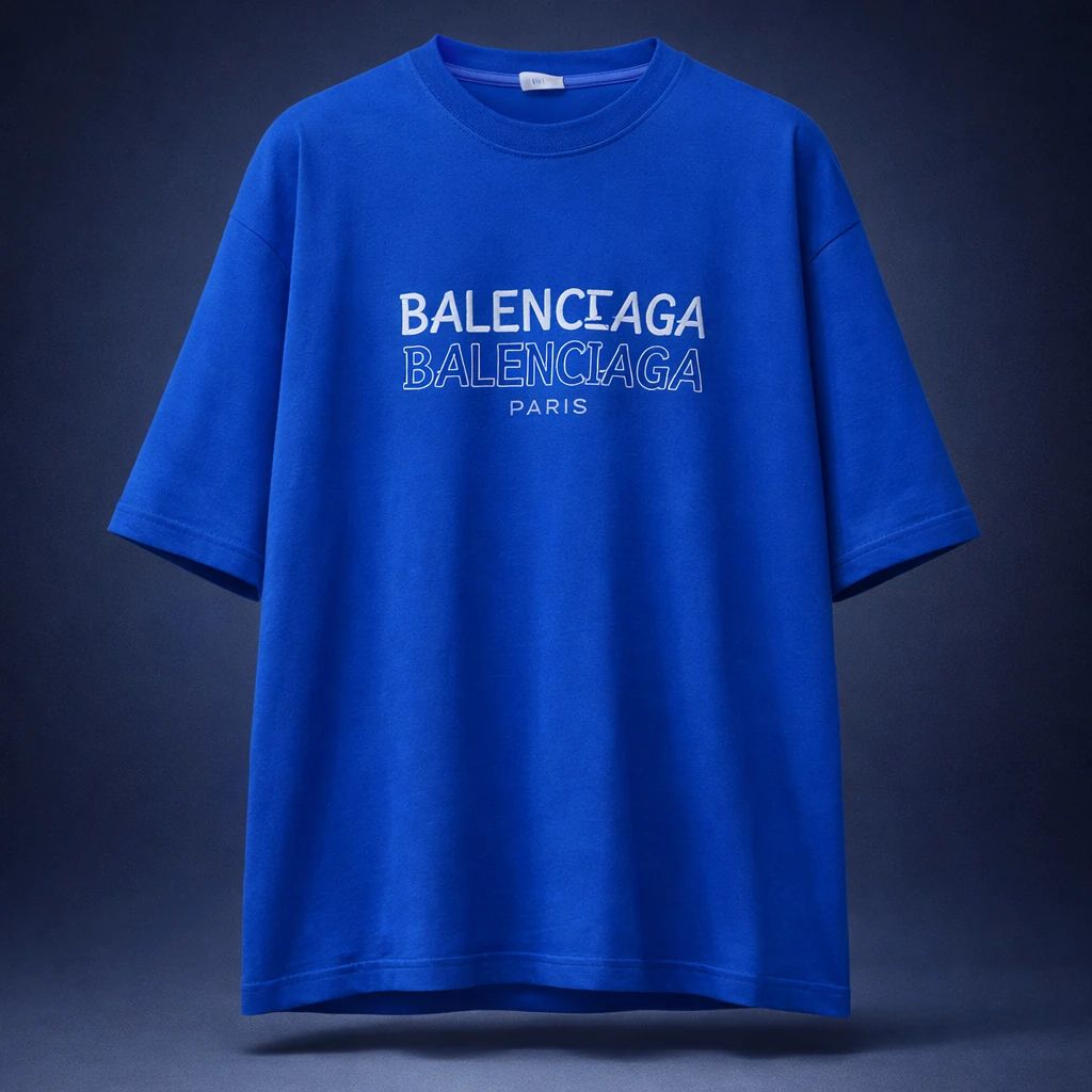 ناموجودتیشرت باکسی مردانه آبی چاپ لوگوتایپ بالنسیاگا-تک سایزXL