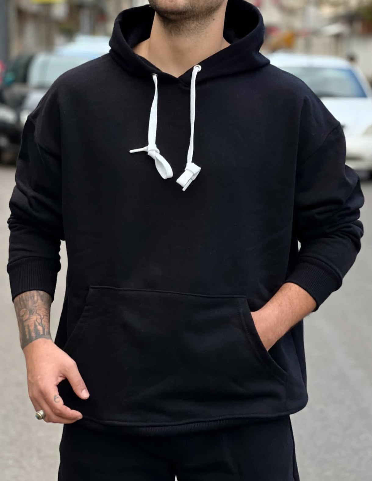 هودی مشکی بیسیک پسرانه لش استایل کیفیت بالا دورس سه نخ درجه یک