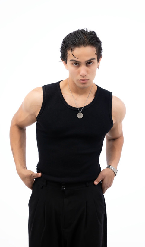 تنک تاپ مشکی مردانه فول کش پارچه کبریتی ریز با کیفیت عالی کد ۲