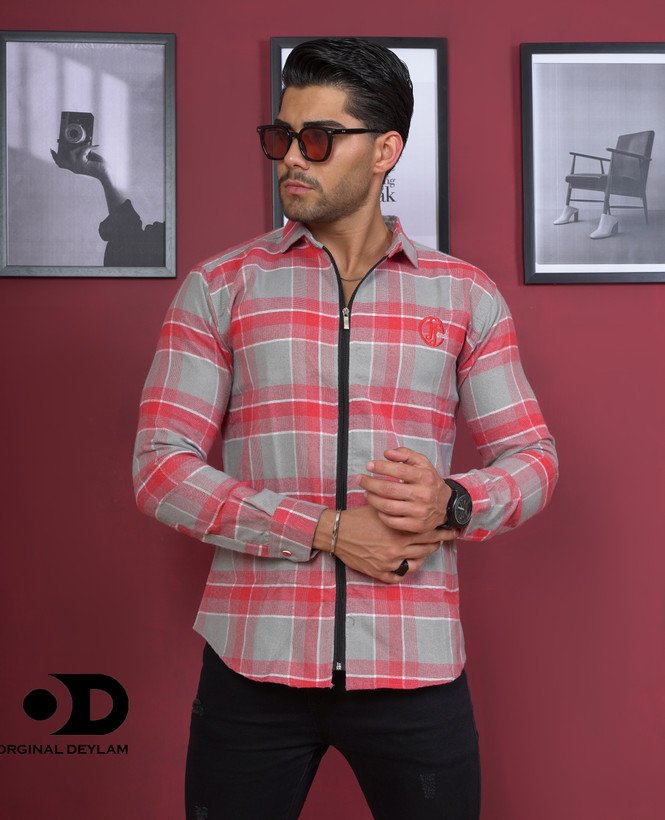 پیراهن زیپی پشمی چهارخانه مردانه کد ۱۴۵۵