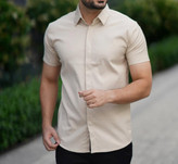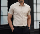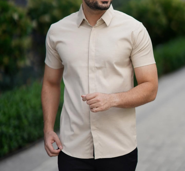 پیراهن آستین کوتاه کرم مردانه ساتن کش پنبه | کیفیت برتر