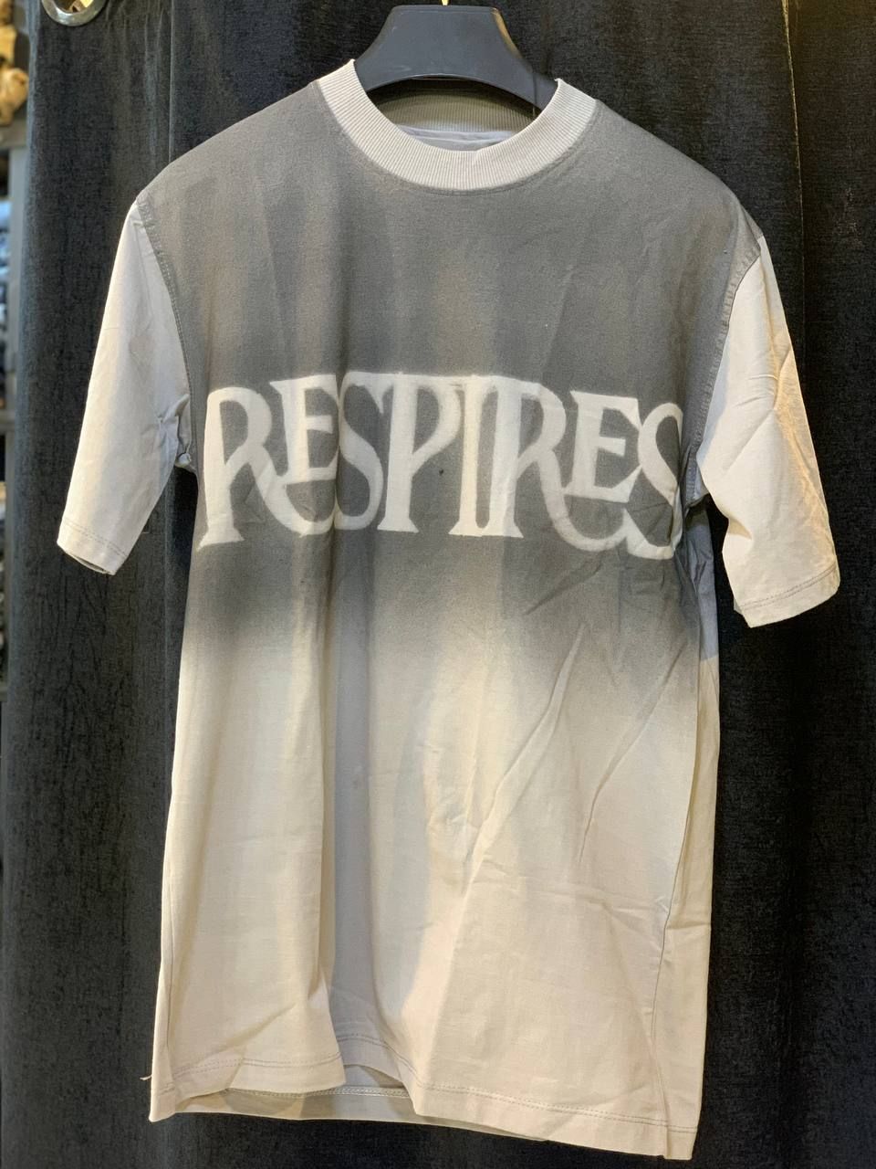 این تیشرت با طراحی گرادینت حرفهای که از خاکستری متالیک در بالا به سفید خالص در پایین تبدیل میشود، شاهکاری از تکنیک رنگرزی پیشرفته است. واژه "RESPIRES" به معنای "نفس بکش" یا "تنفس کن" با فونت بولد و مدرن در مرکز سینه جای گرفته و پیامی از آرامش و حضور ذهن را منتقل میکند. این طراحی مینیمال اما تاثیرگذار، ترکیبی هوشمندانه از فلسفه ذن و استتیک معاصر است.