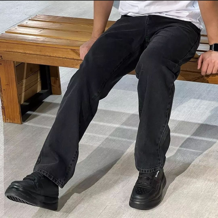 شلوار جین بگ مردانه رنگ مشکی پادچه سنگشور کجراه گرماژ بالا کد ۷۶