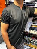 تیشرت یقه کوبایی پارچه بیسکوییتی فول کش درجه یک دو رنگ سفید و مشکی