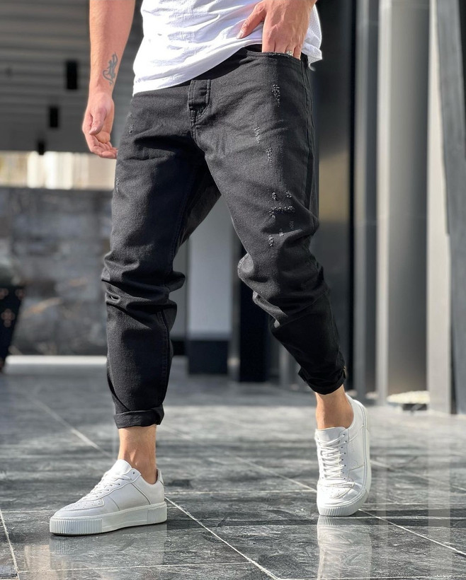 شلوار مام فیت مشکی پرکلاغی مردانه پارچه جین ترک-فول کیفیت